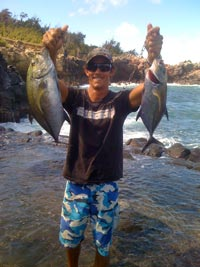 Maui offers a wide array of fish and any that bites is great! But the prized fish here in the islands are the trevallys. The white trevally also known as the GT or ulua, and the blue fin trevally here in Hawaii known as the omilu are the two most prized fish. The papio is a small trevally and also a great catch. There are 6 different varieties of goat fish that are great to catch, many different kinds of trigger fish, wrasse, barracuda, and even bone fish are just some of the fish we can catch from shore. If you catch a good eating fish within legal limit, we’ll even filet it for you!